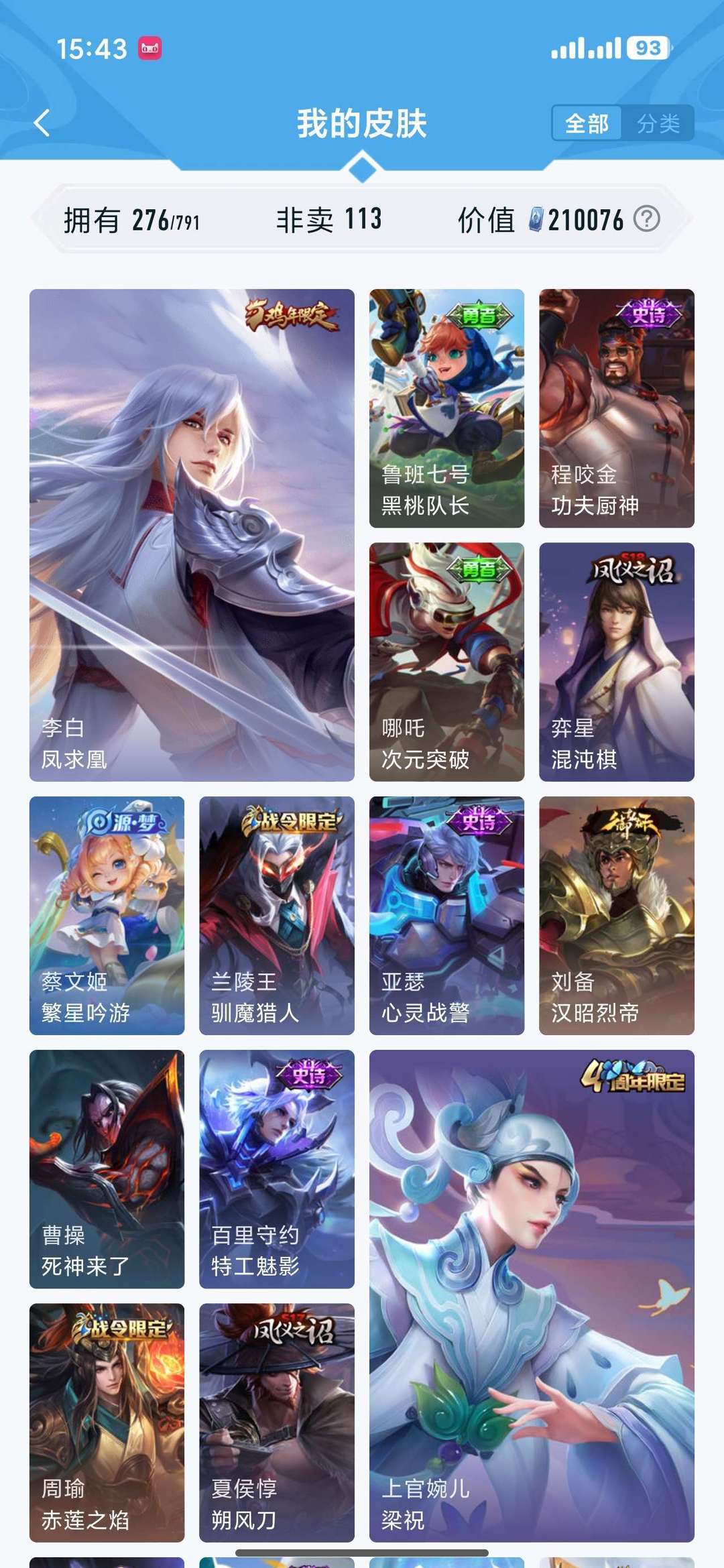 【V9 235皮】。。。47级资深收藏家账号✨蛇年+马年限定全齐,荣耀典藏超多稀有皮,三无双,两珍品传说