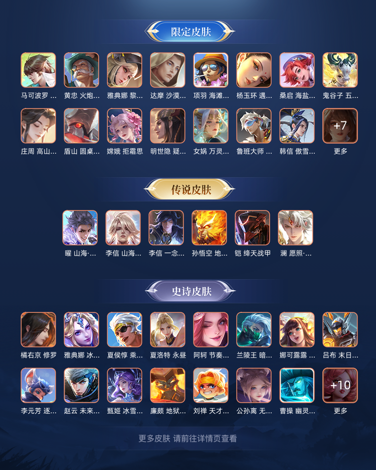 【V9 196皮】9典藏丶1无双丶3珍品传说丶8传说丶48史诗典藏凯小乔诸葛亮李白花木兰等等。