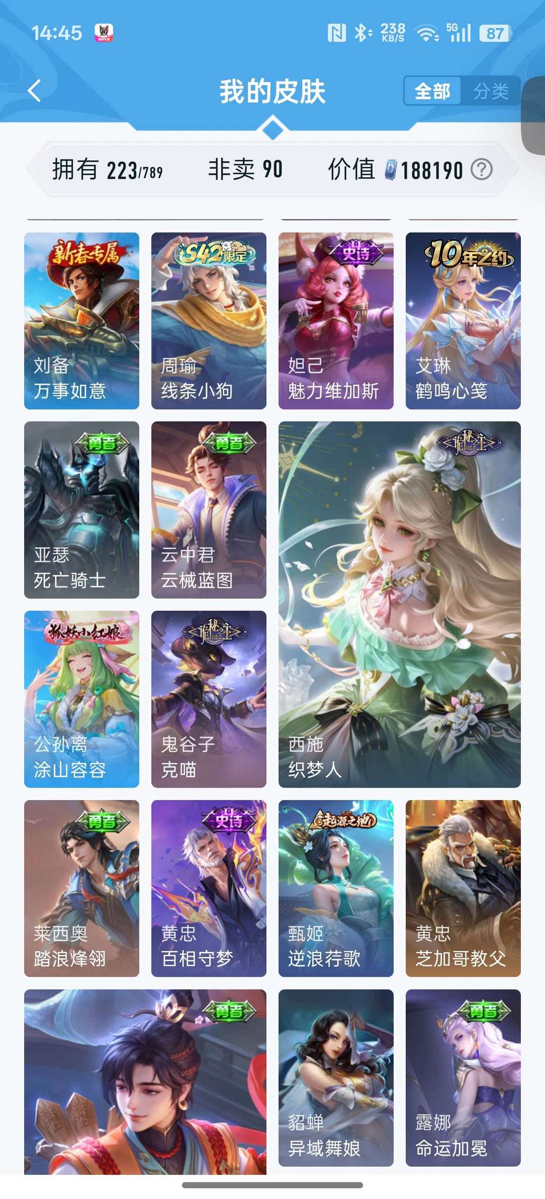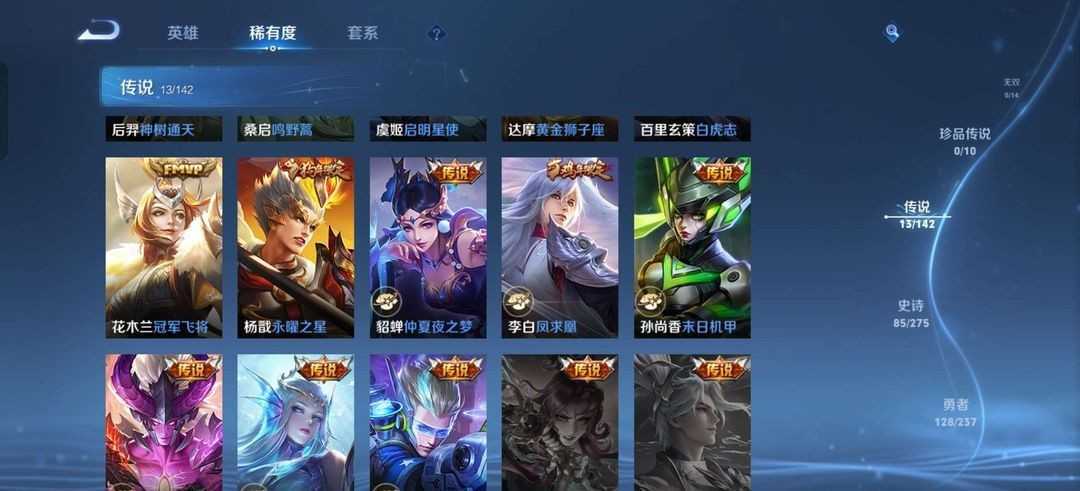 【V10 552皮】554个皮肤,贵十,245个限定,猴子,李信,李白,诸葛亮无双,三个典藏,传说66个,