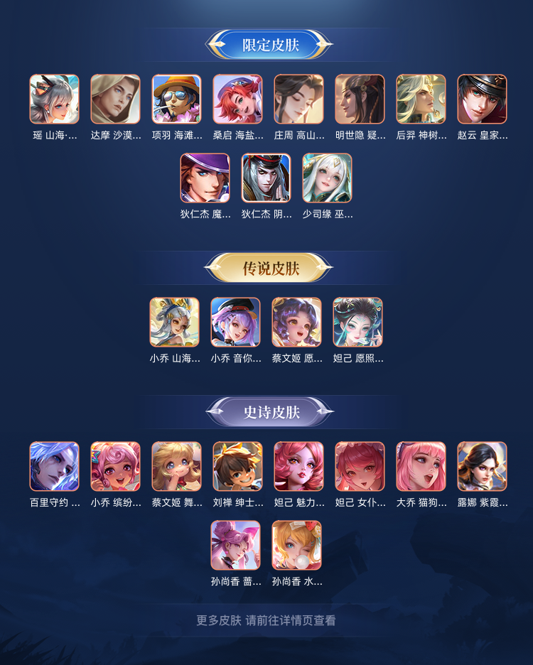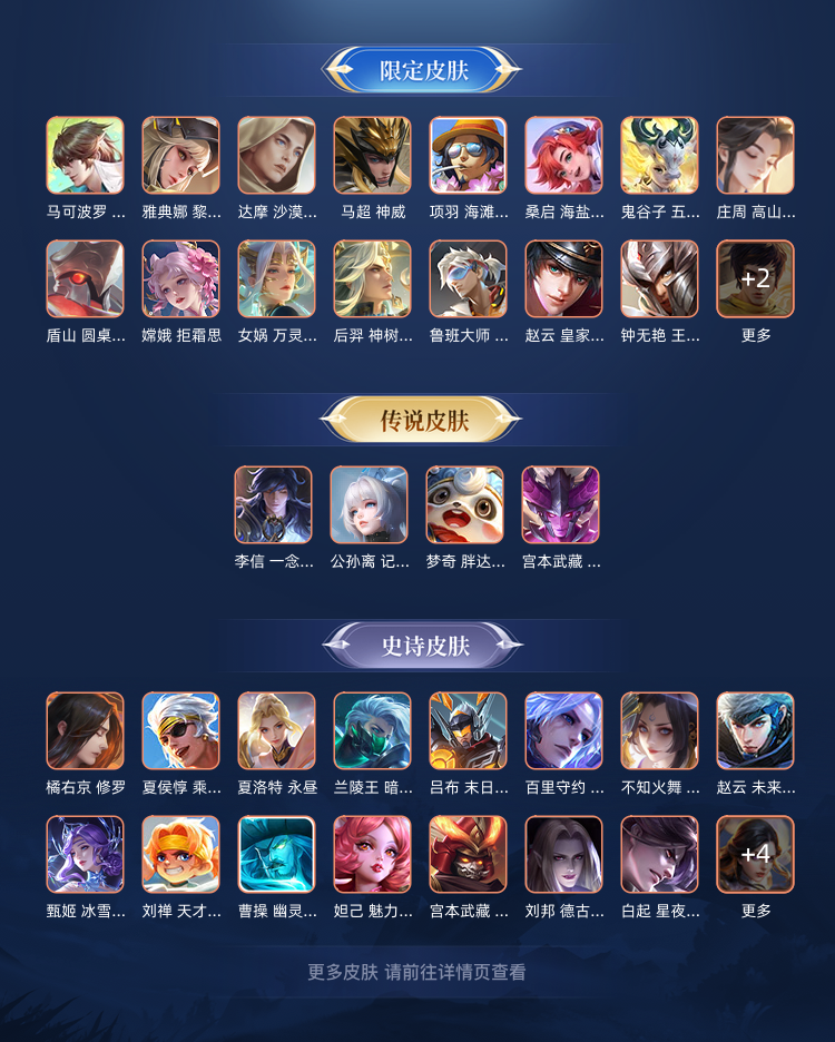 全铭文,一典藏,传说若干,限定若干,每个英雄都有皮肤除去新出的,