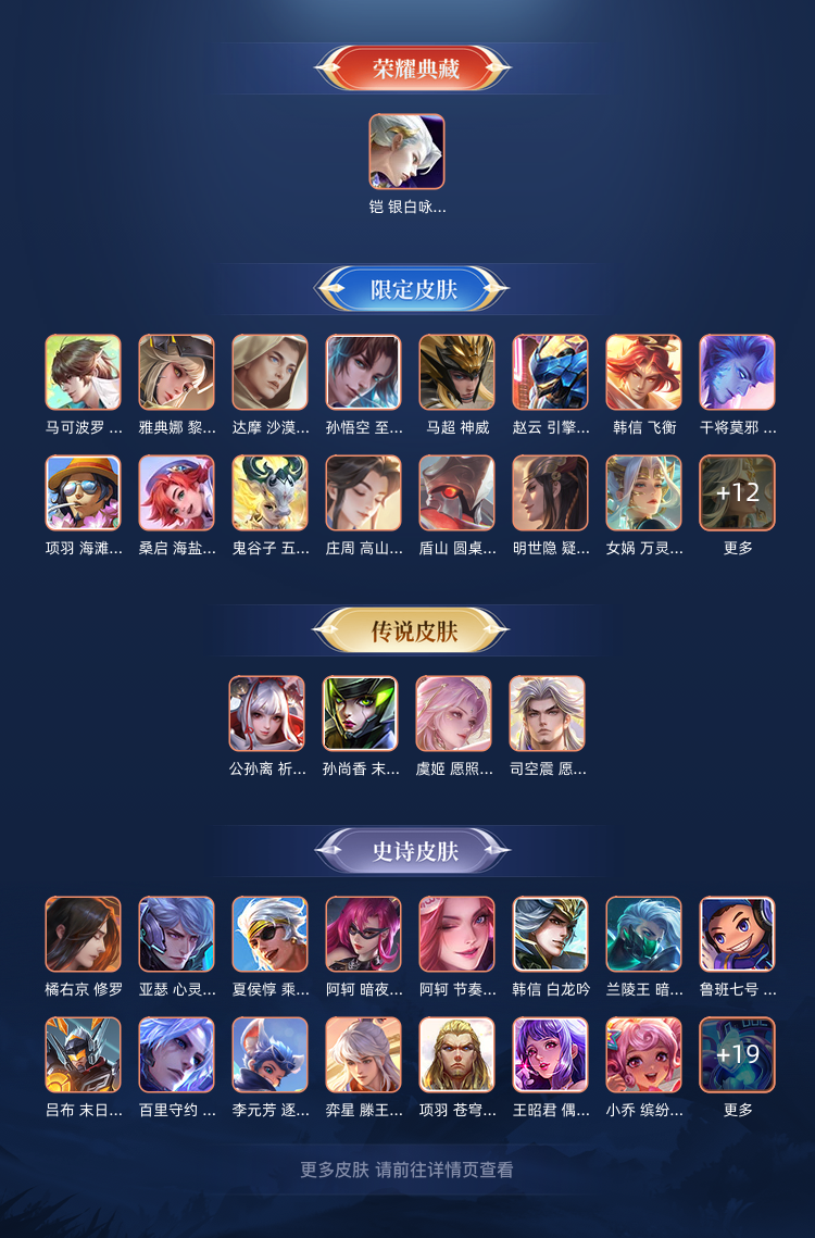 【V8 485皮】【可开麦 4典藏+1珍品+4星传说+牛年、龙年全套+30传说】珍品嫦娥 李白夏侯凯木兰典藏