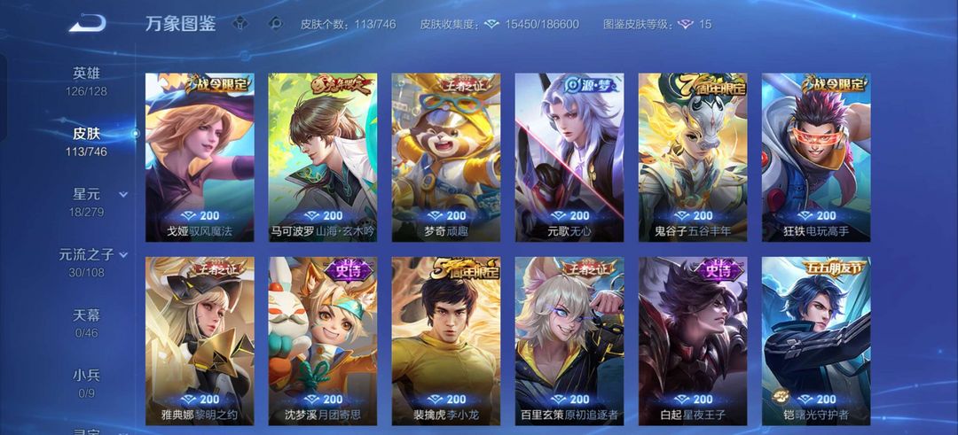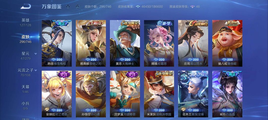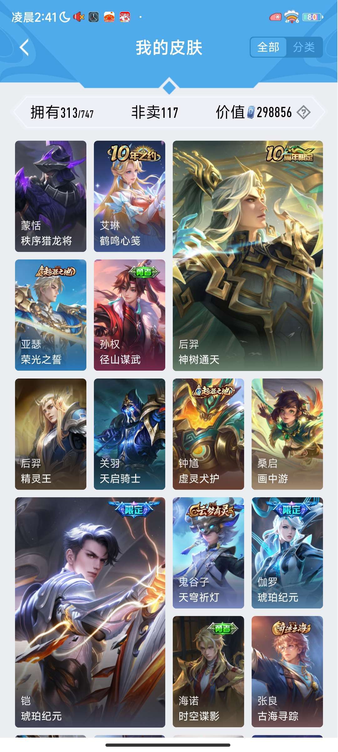 【V10 623皮】9个典藏皮肤五个无双限定皮肤 104个传说皮肤