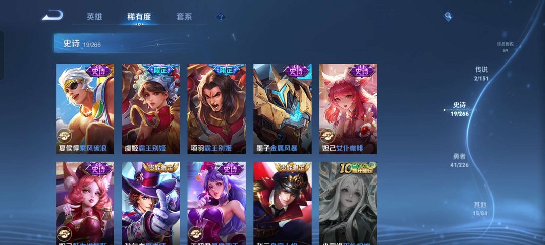 【V10 304皮】极品v10 300极品皮肤,全英雄,12荣耀水晶,41传说,102限定,107史诗,虐菜神号,段位低