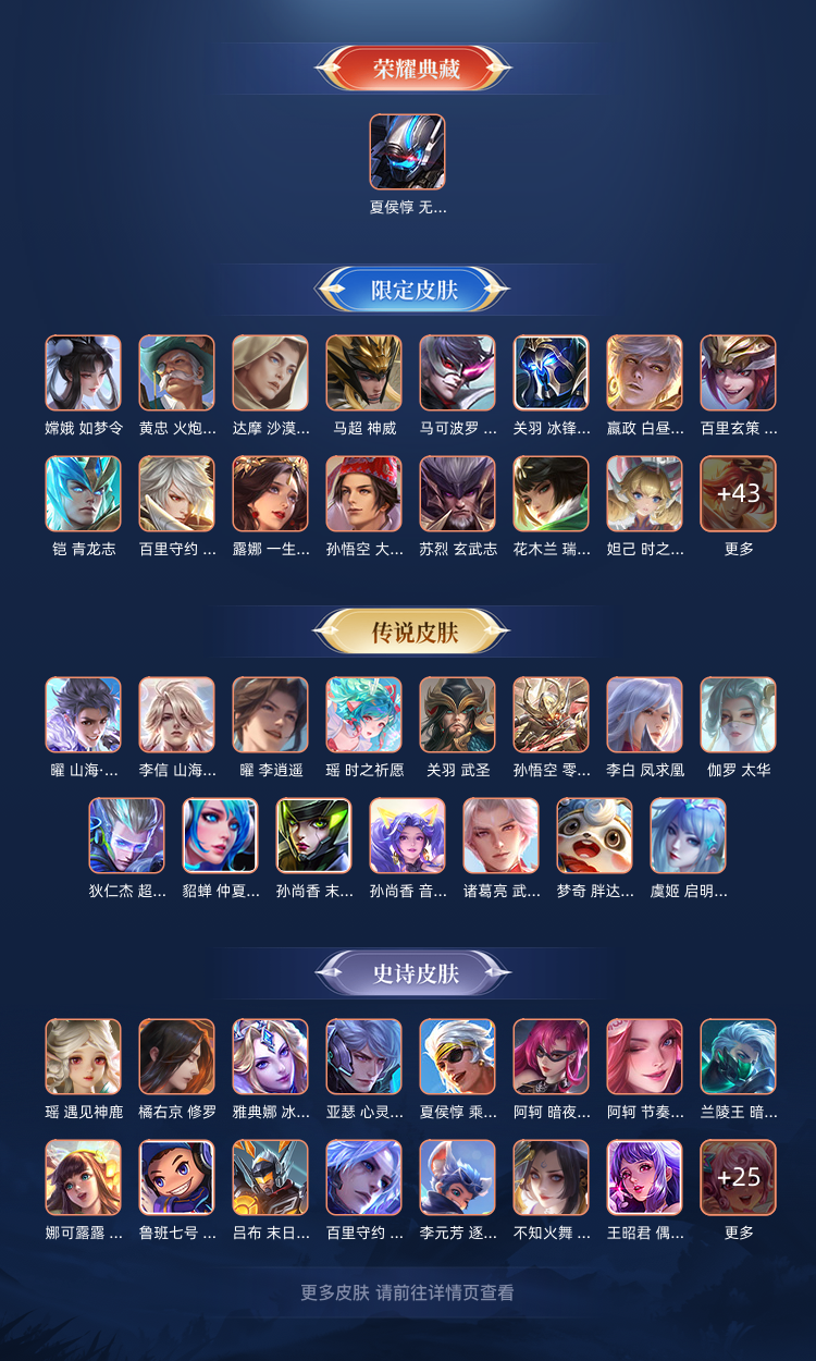 【V6 152皮】鲁班七号,典韦,墨子,钟馗,妲己,甄姬,西施,少量皮肤