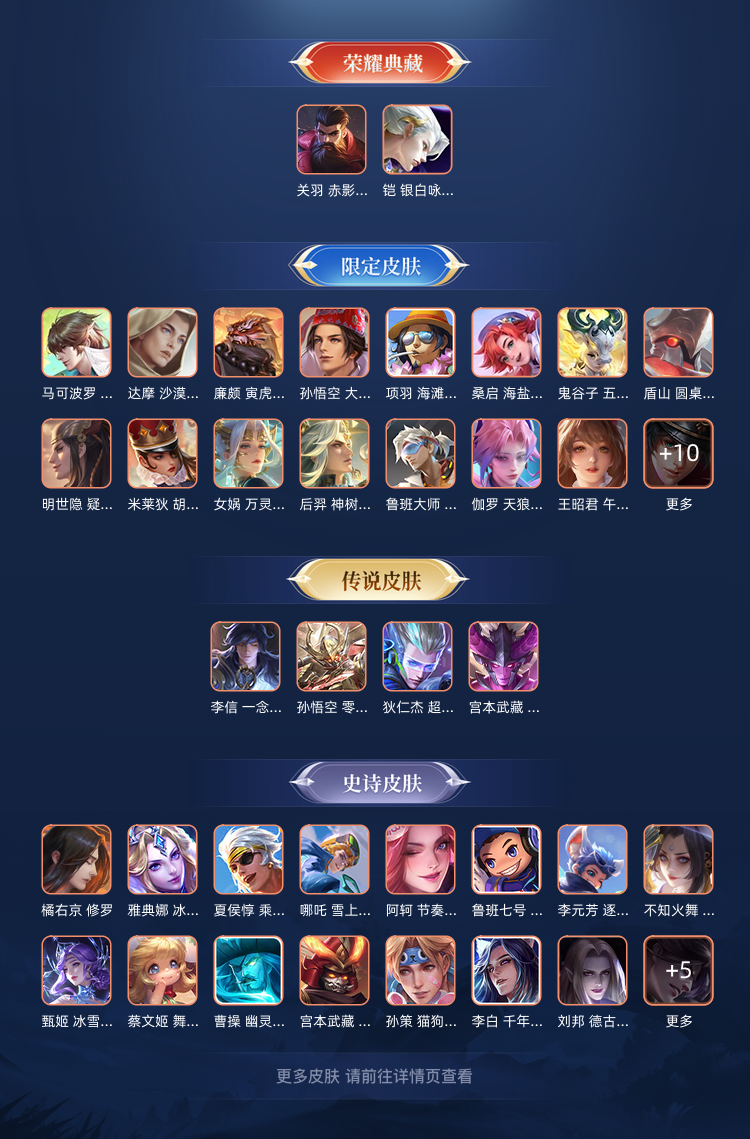 【V10 562皮】V10,全英雄,563个皮肤,7个典藏皮,李白无双皮,2珍宝皮,1个天幕185和其他传说史诗皮