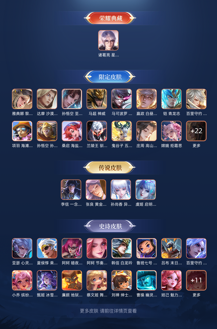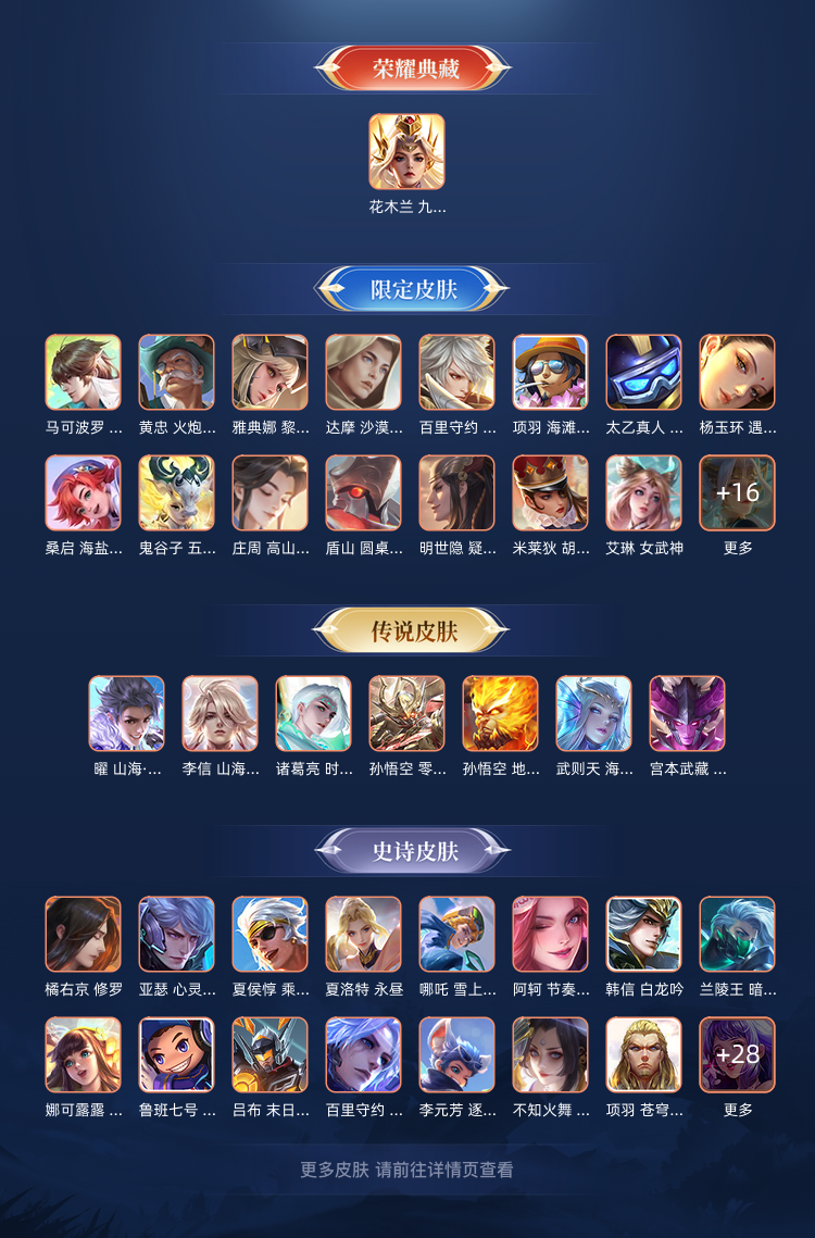 基本都有,英雄都有,铭文满级,史诗皮肤都有