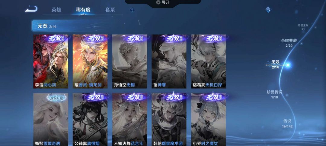 【V7 326皮】李白荣耀限定,曜和李信的无双限定,伽罗的珍品收藏还有十几个传说皮肤,和一百多个史诗皮肤