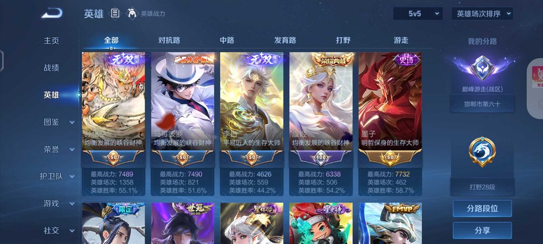 【V7 89皮】苹果账号出租,贵族7,英雄120个,皮肤数量89个包括荣耀典藏皮肤。