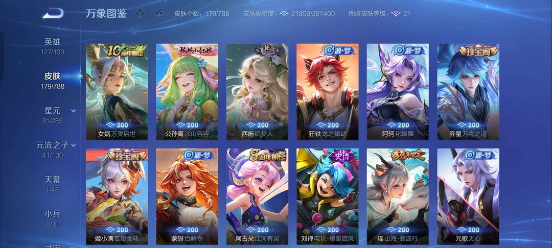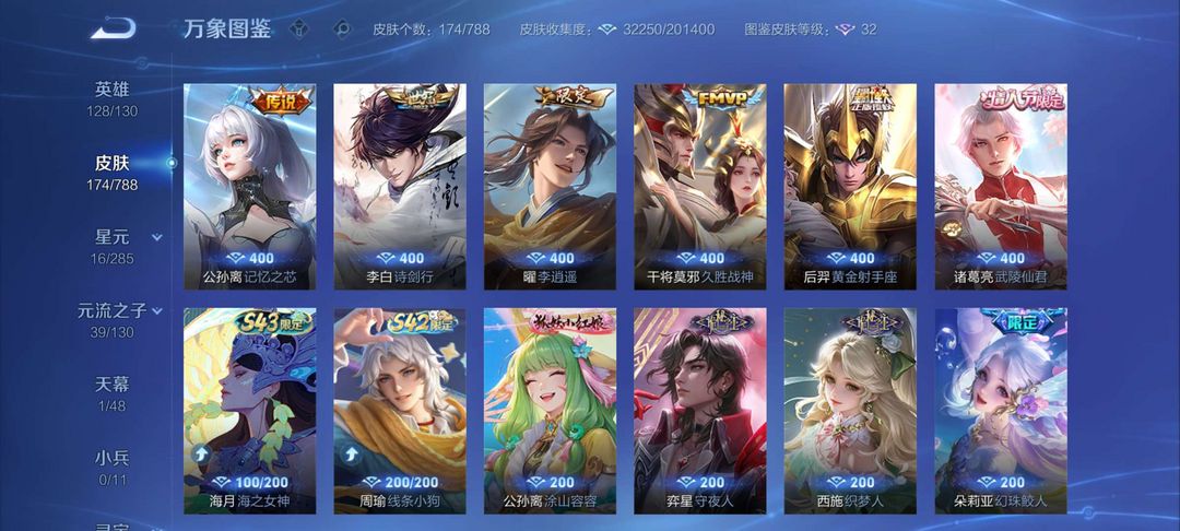 【V10 530皮】全英雄,532皮肤,贵十,王者早期全皮肤,各种限定,典藏都有