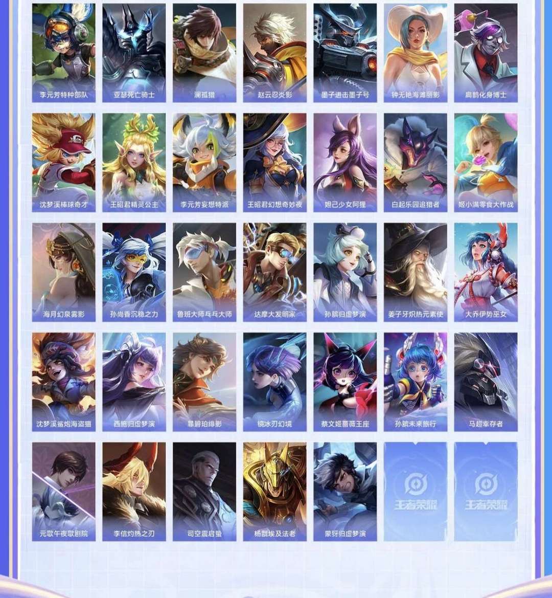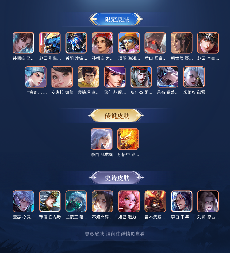 孙悟空至尊宝,韩信街头霸王,露娜紫霞仙子等