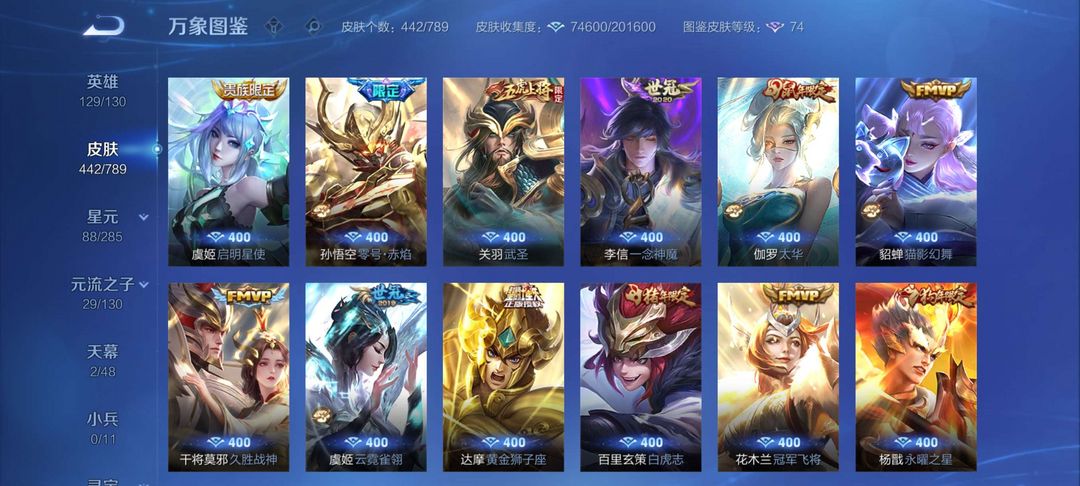 【V7 245皮】246皮肤-李白猴子典藏-伽罗韩信五岳-后羿达摩星座皮-马超神威-干将冰霜