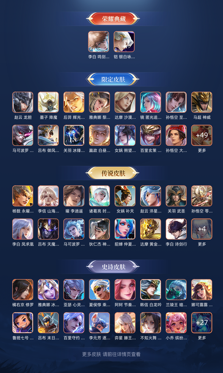 【V9 419皮】两典藏,鸣剑曳影,银白叹咏调,至尊宝,无相,零号赤焰,白泽,李白全皮,打野皮肤居多