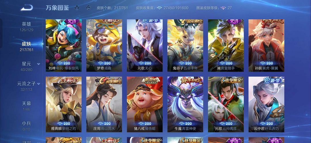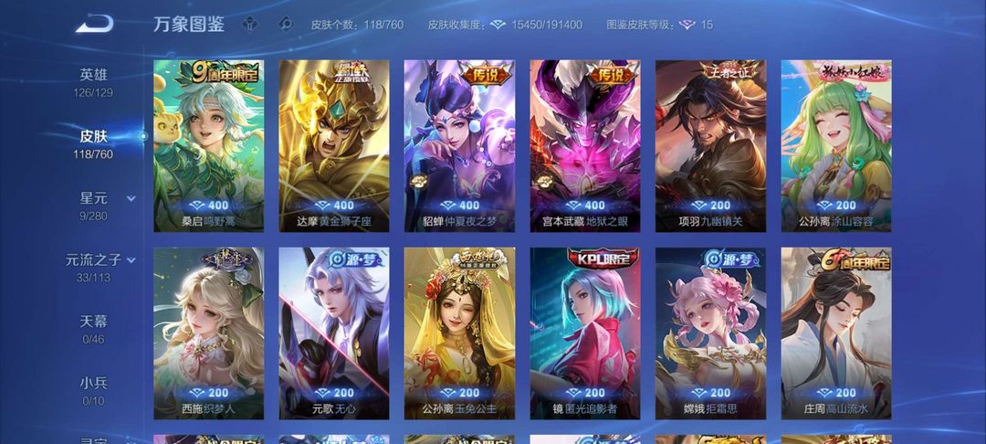 【V9 458皮】4典藏。42传说,3珍品无双,2无双,148史诗皮肤
