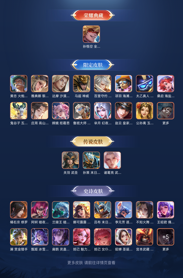 【V10 511皮】安Q 贵族10 4典藏 495皮 3星元 82传高质量皮肤 无双妲己/追讨游戏/战鼓燎原/金貂/蓝宫