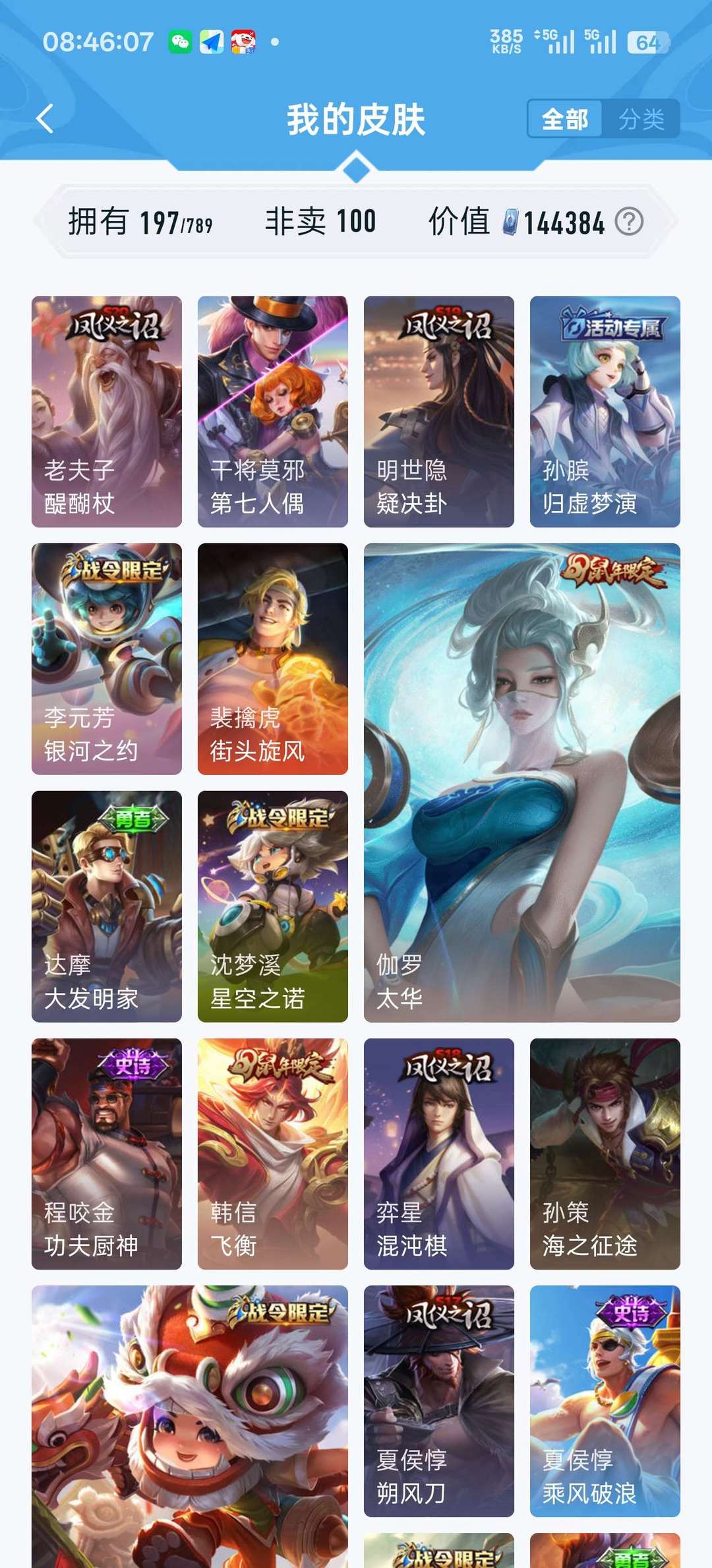 【V6 151皮】144个皮肤 英雄基本全 强的厉害 厉害的很非常厉害