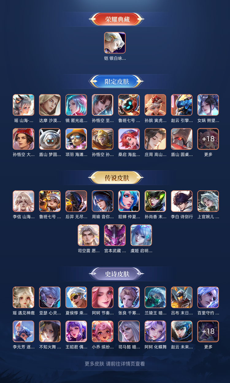【V8 303皮】李白典藏天魔云鹰飞将久胜武圣等十几款传说、限定,总皮肤300多