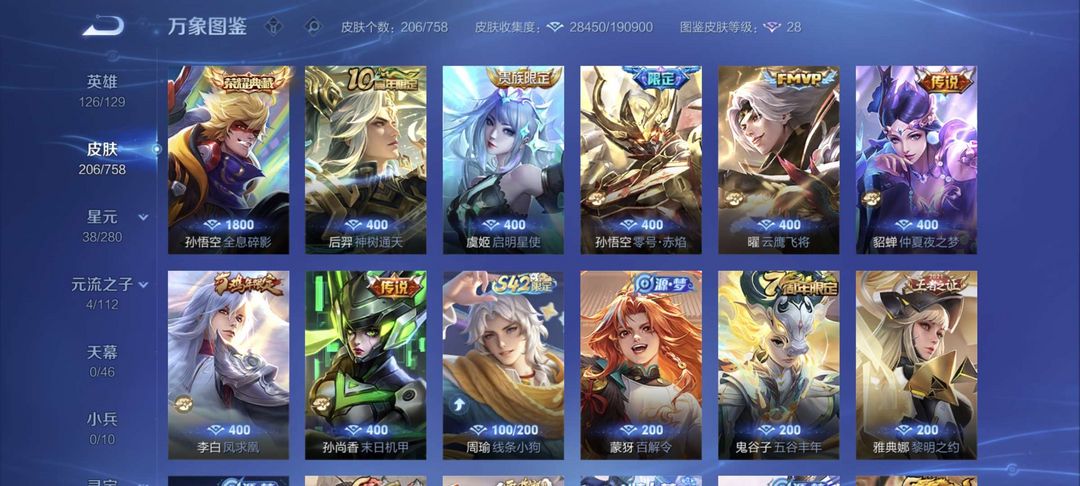 11传说,47史诗,多为射手和对抗皮的限定皮