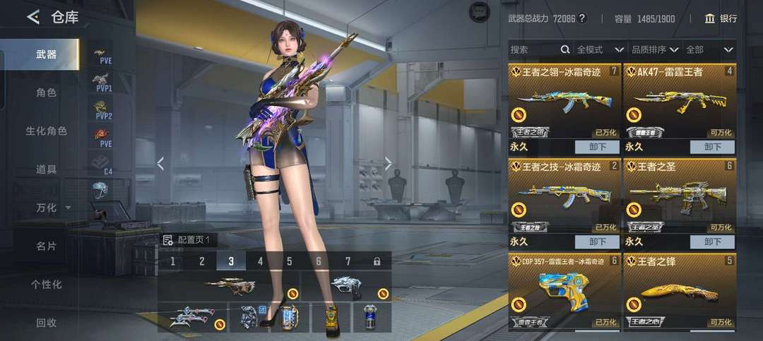 生化宙斯套装♥赤芒蝶刃♥6把屠龙加星空皮♥巴雷特毁灭加音效卡♥柯尔特仲达♥极品守护者觉醒四凶觉醒♥