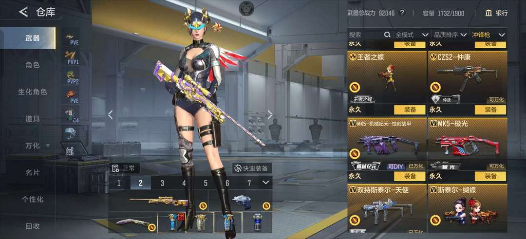 本店有M12S–天公丶王者之蝶丶GZS2–仲康丶斯泰尔–蝴蝶丶KSG–孟获,其余的武器看图片!