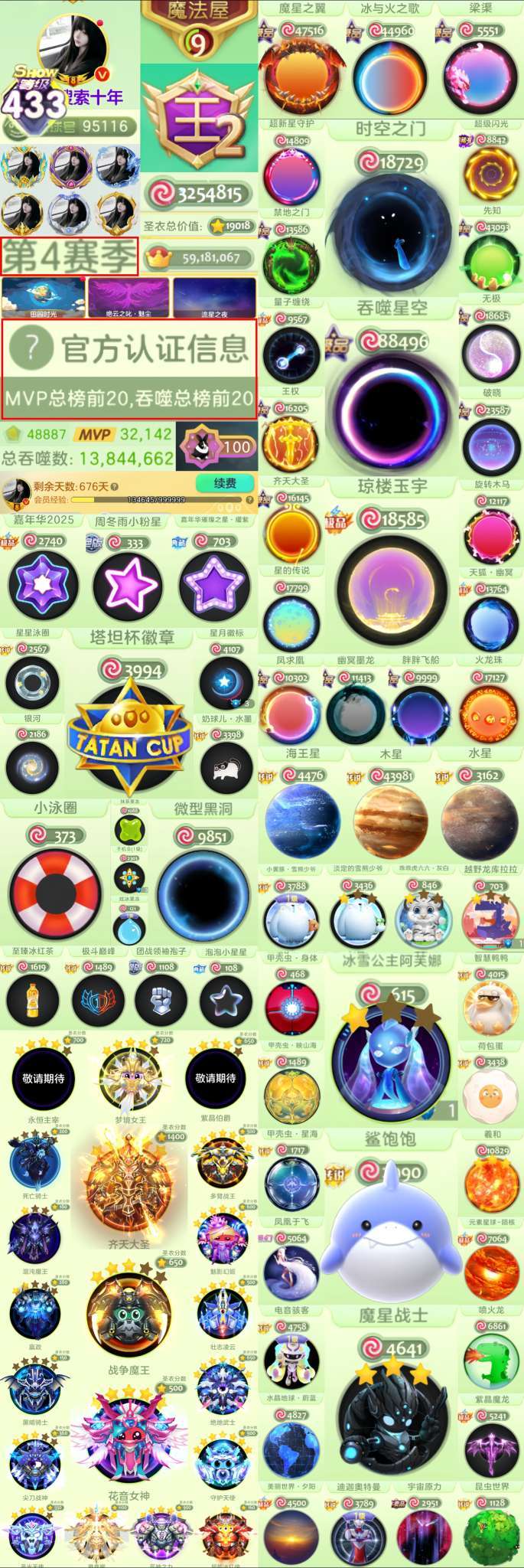 35盾❤满赛季❤王子公主静谧空间❤吞噬星空时空之门❤璀璨之星嘉年华阴阳泳圈甲壳虫满级龙兔兽敬请期待