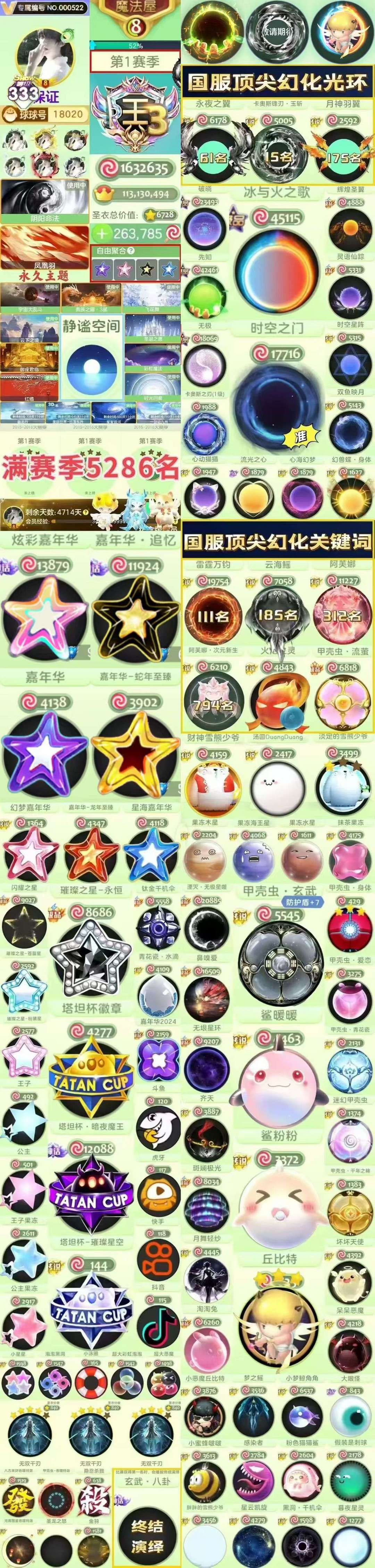 静谧空间*满赛季万排名2年卡【幻化量子裂变甲壳虫*黑泼墨乾坤*泳圈2024嘉年华*剑指龙吟*软咩咩*