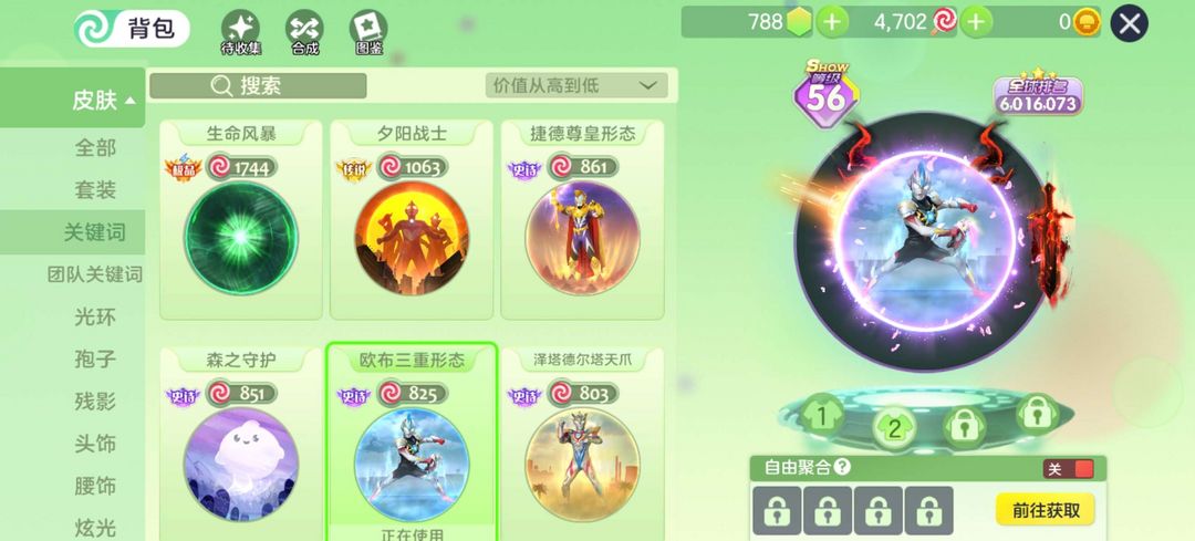 无极2025黑洞嘉年华光环生命风暴夕阳战士套装欧布三重形态皮肤198