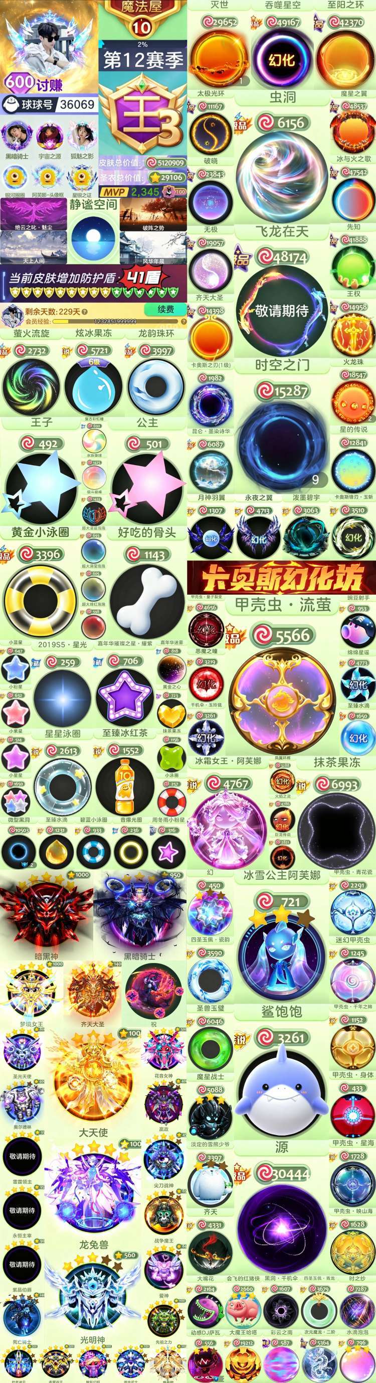 王飞龙鲨饱饱/王子公主/静谧空间/满级水滴/时空之门/黑洞/甲壳虫/二级阿芙娜/满级蝙蝠/圣兽玉璧