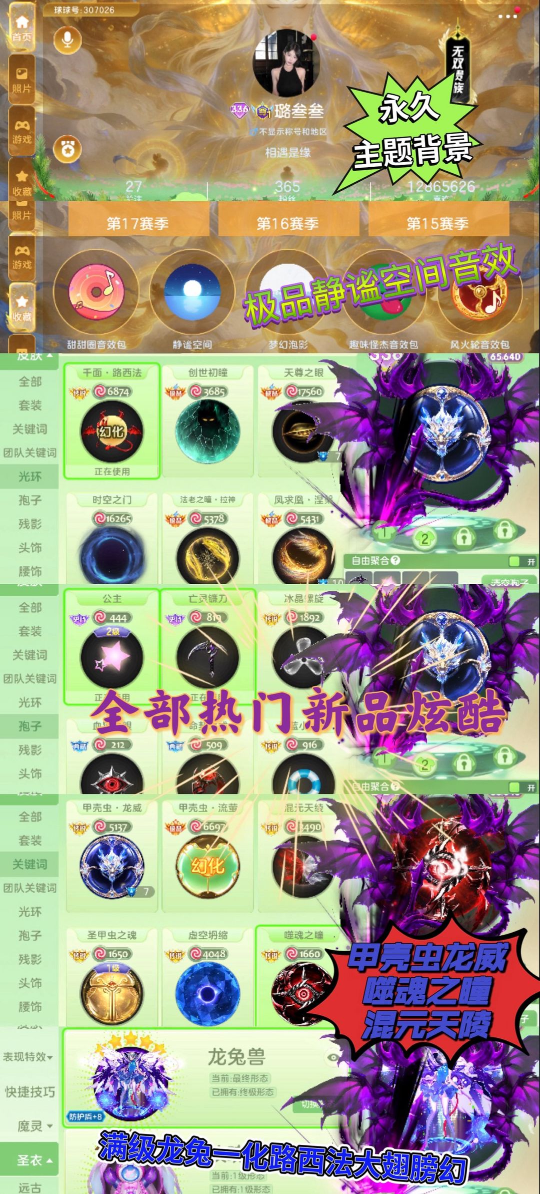 静谧空间*至尊新皮【甲壳虫龙威+天尊之眼创世初瞳+时空满级龙兔路西法大翅膀+噬魂之瞳公主混元天绫金魂
