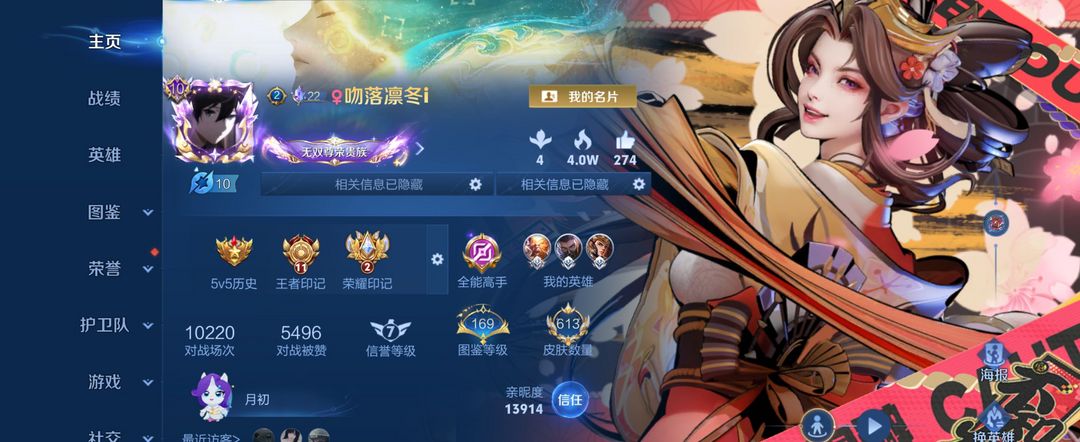 (苹果15区) 神豪无双V10,全英雄,613皮肤,怪盗基德天幕,狐妖小红娘小兵皮肤。喜欢的请收藏,方便租号。 请素质游戏、切勿挂机、消极比赛、辱骂等。发现挂机者一律拉黑
