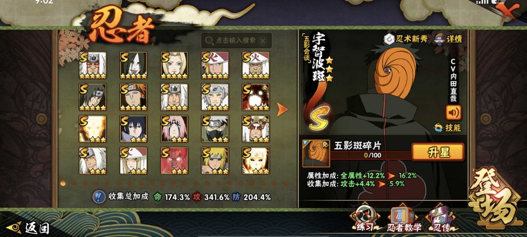 侠隐佐助☀️仙人巳月☀️51S全忍者☀️3500w☀️漂泊带土黑绝☀️全S全A全忍者