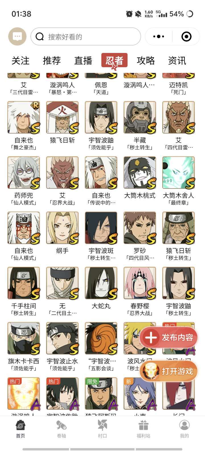 六道带土已出!!传说自来也!!永恒万花筒佐助!30s,全高招s,所有形态水门,便宜体验到强力s忍者