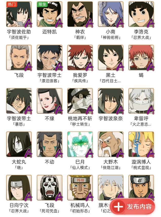 16S42A 十尾带土,忍战艾,秽土鼬三代长门,青年长门艾水门等等热门忍者 1200w 战斗力
