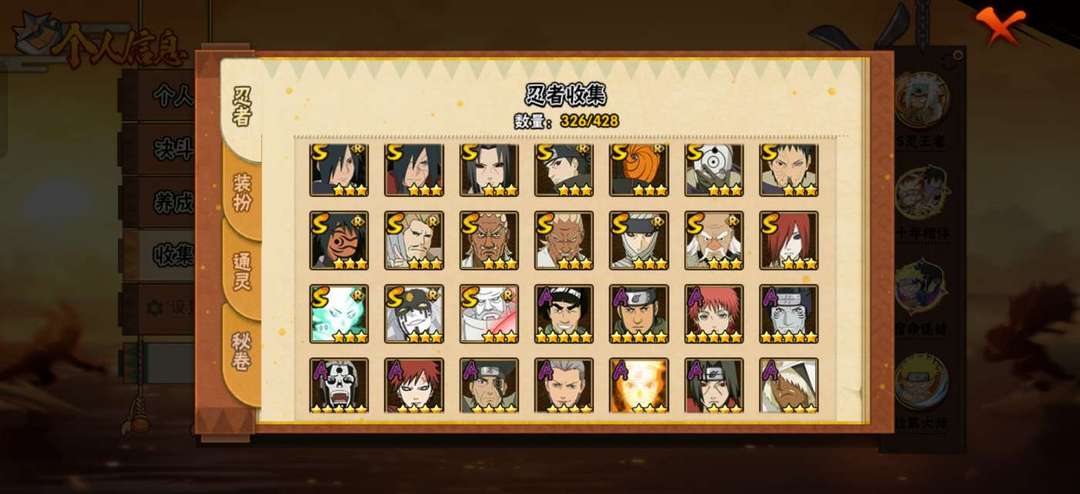 拥有大多数主流s忍。超哥,六道带土,九喇嘛连结,秽土转生柱间,死三代