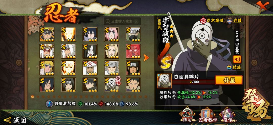 20s⭐忍战带土⭐千万战力⭐仙人自来也⭐罗沙⭐多a忍者⭐可副本⭐秽土三代