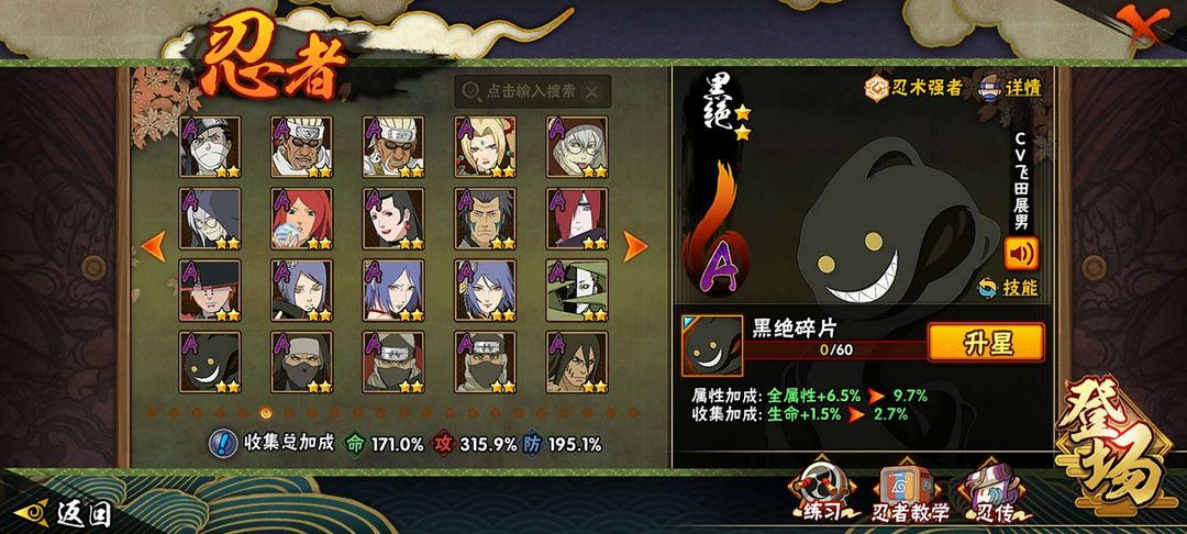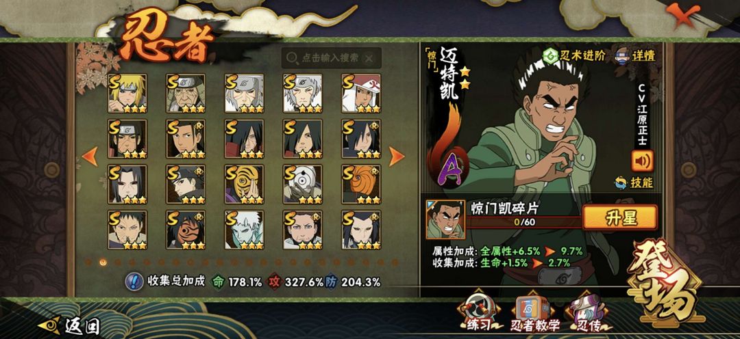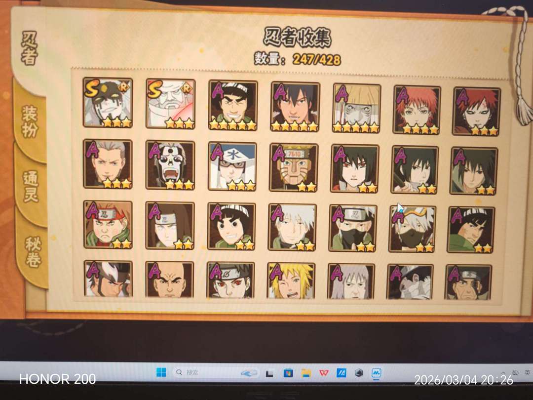 30个s,45个a,250忍者,神驹老马带皮肤,五影会谈班,23年之后高招和忍法帖全满,1700万战