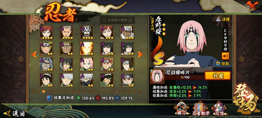 面麻✨新春水门✨万花筒佐助✨百战水门✨川剧自来也✨百战大蛇丸✨飞段✨我爱罗✨虐菜✨练忍者✨到时不