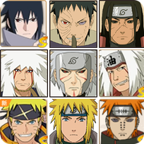 漂泊带土+皮肤、永恒佐助、九喇嘛链接水门、秽土二代、解斑、秽土长门、忍战带土、秽土柱间