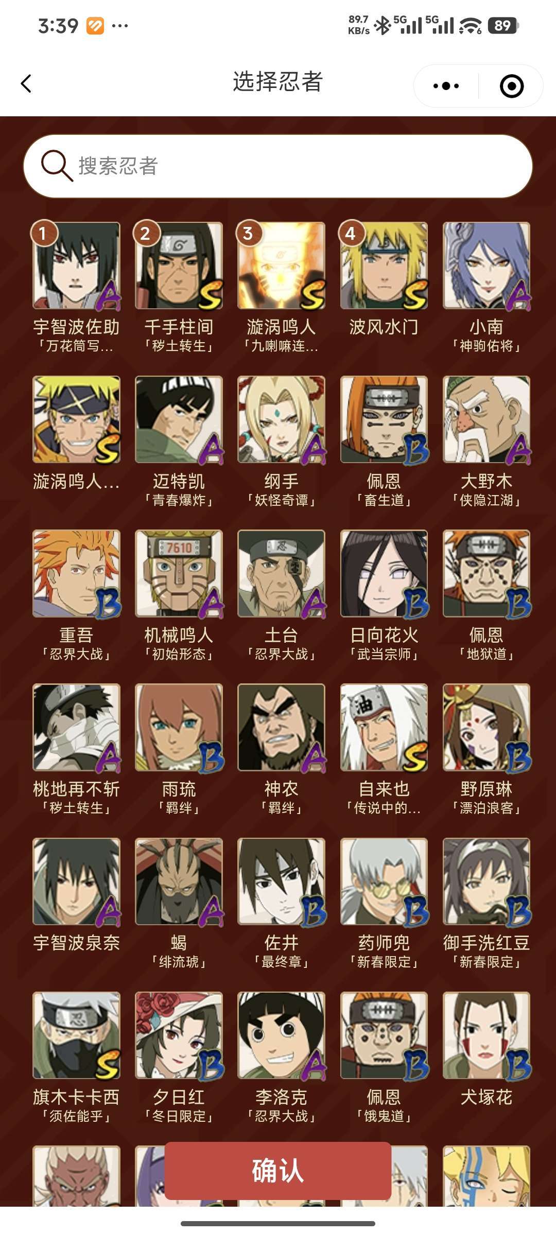 55S,70A,阿斯玛已出。一般忍者都有,可排位,战力两千七百万,可带团本