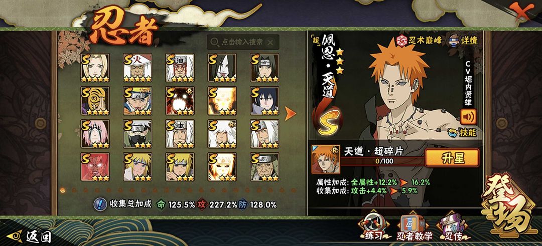 不动♈42S20A♈300全忍者♈2500万战力♈漂泊佐助♈忍战带土♈黑绝♈漂泊佩恩♈天道