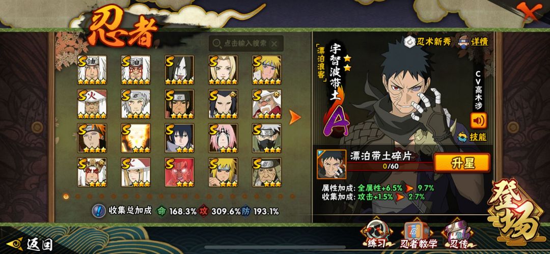 六道带土秒出❤️2500万战力❤️300+忍者❤️ 熊猫❤️全高级招募7