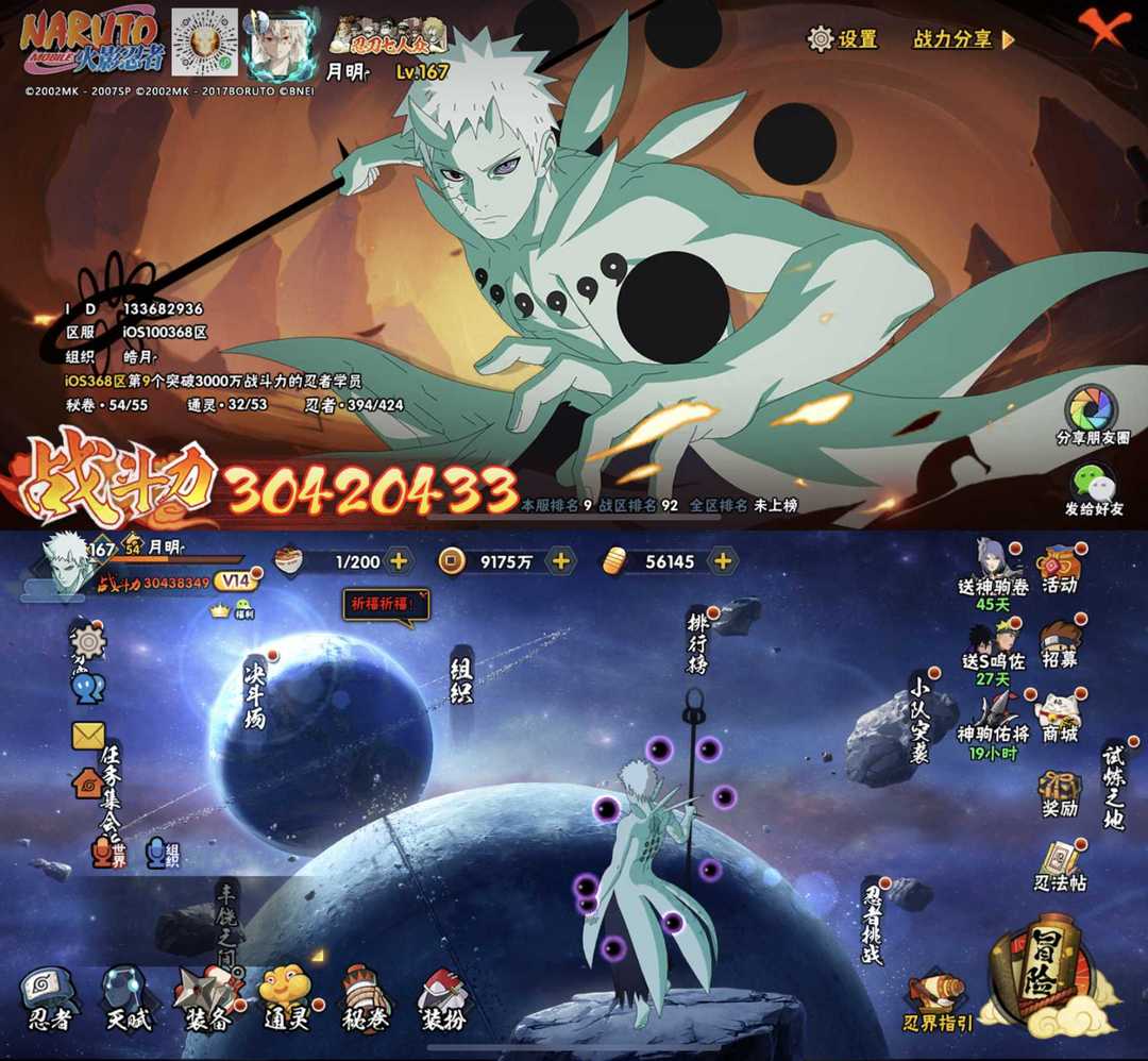 六道带土✨漂泊带土✨四星超哥✨56S✨85A✨3040万战力✨全S拿下