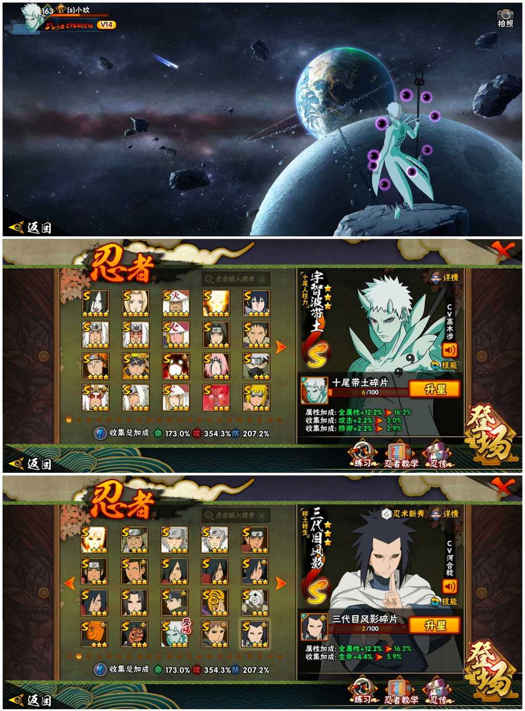V区3770+万战十尾带土✨神驹佑将阿斯玛✨全s✨侠影佐助❤️仙人巳月✨水门九喇嘛✨全高招忍者