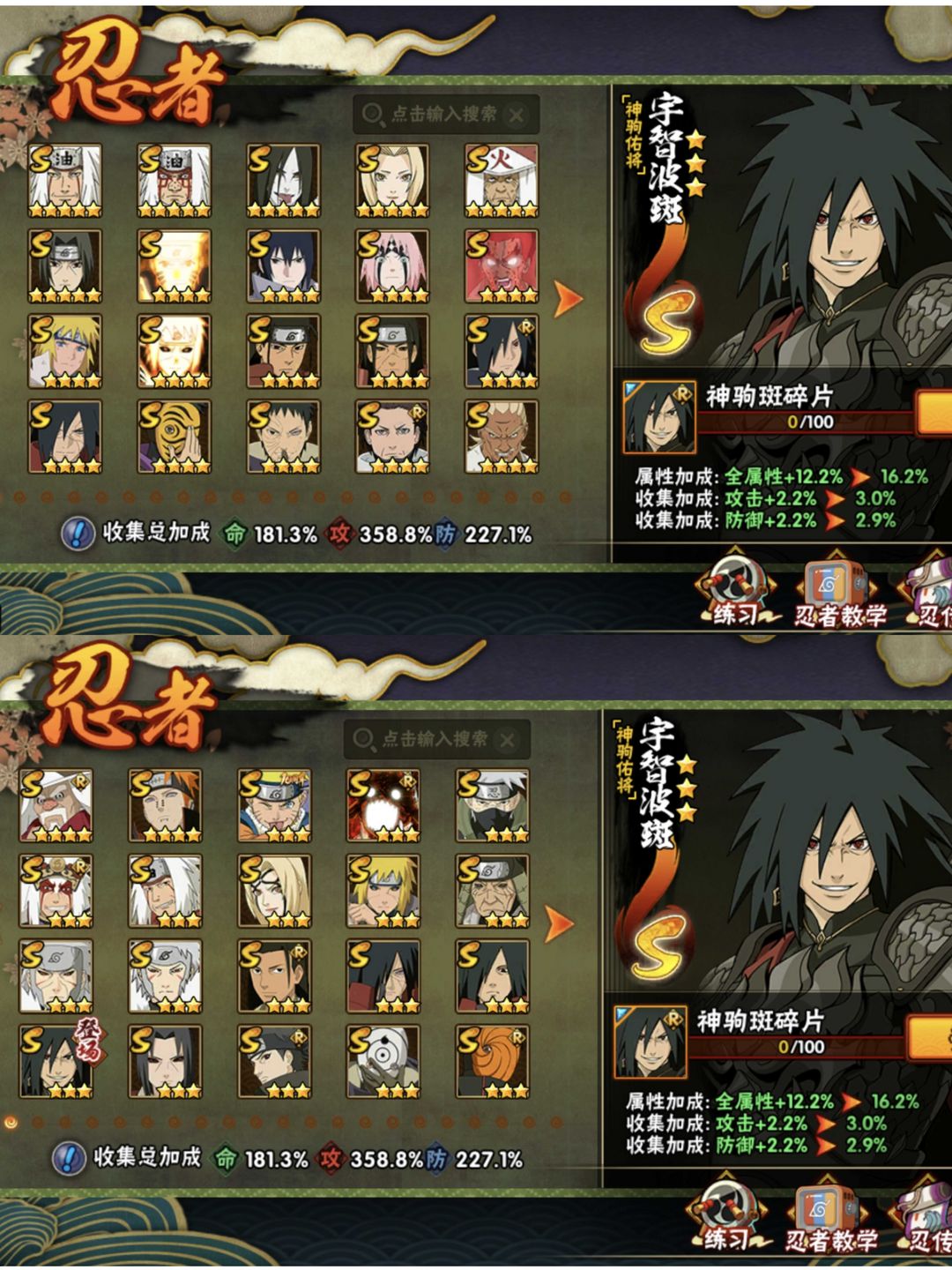 安卓V区3665万战,神驹佑将斑,晓创迪达拉,十尾带土,神驹小南,全S忍,侠隐系列,六尾