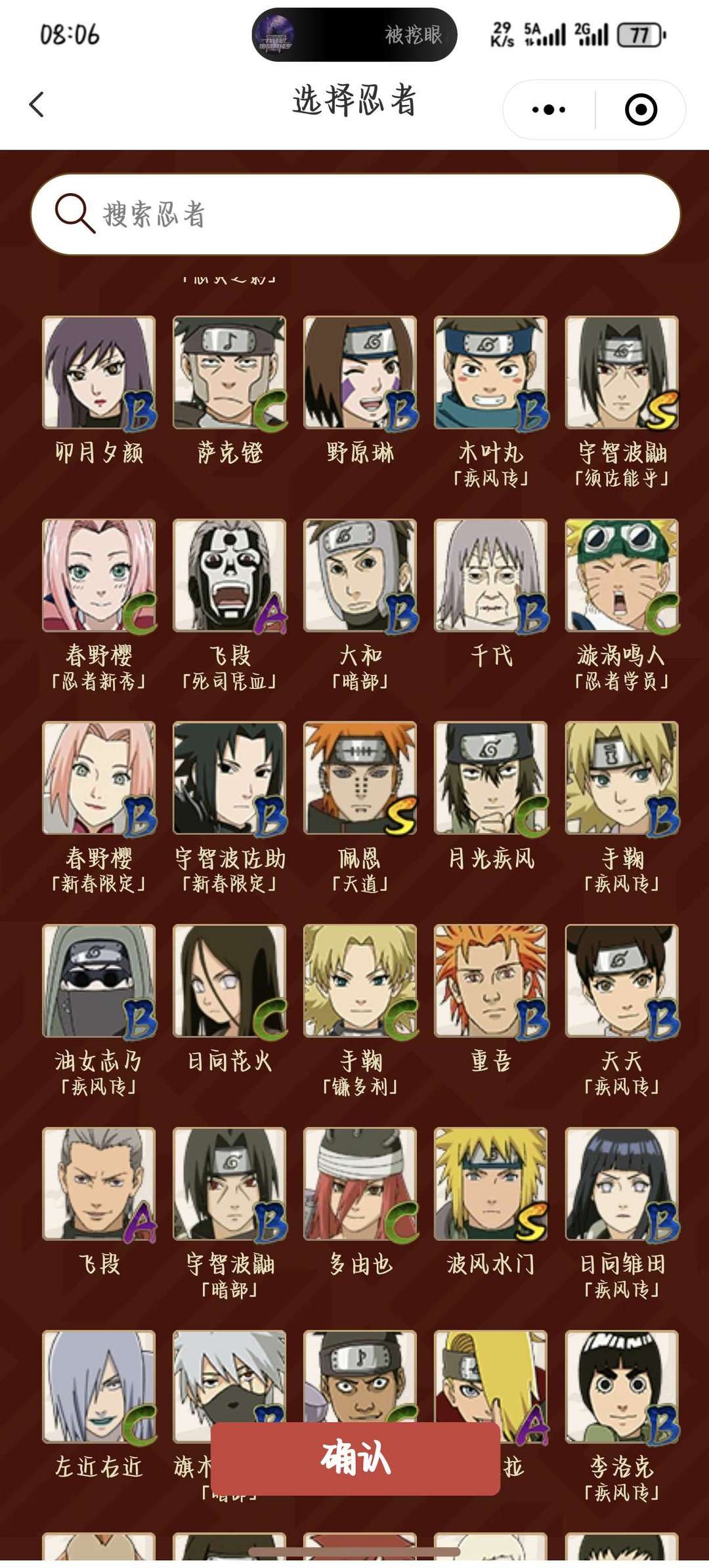 娱乐就好盾狗,漂泊带土,十尾,巳月,侠隐佐助,白面具,普通人,老三代,植物人,青水,天道超,