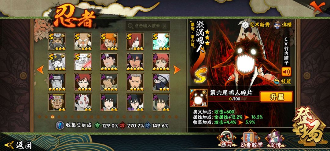 18s43a,忍战带土、永恒佐助、十尾人柱力、秽土水门等s可体验,有骨架、漂泊小南等a可体验。