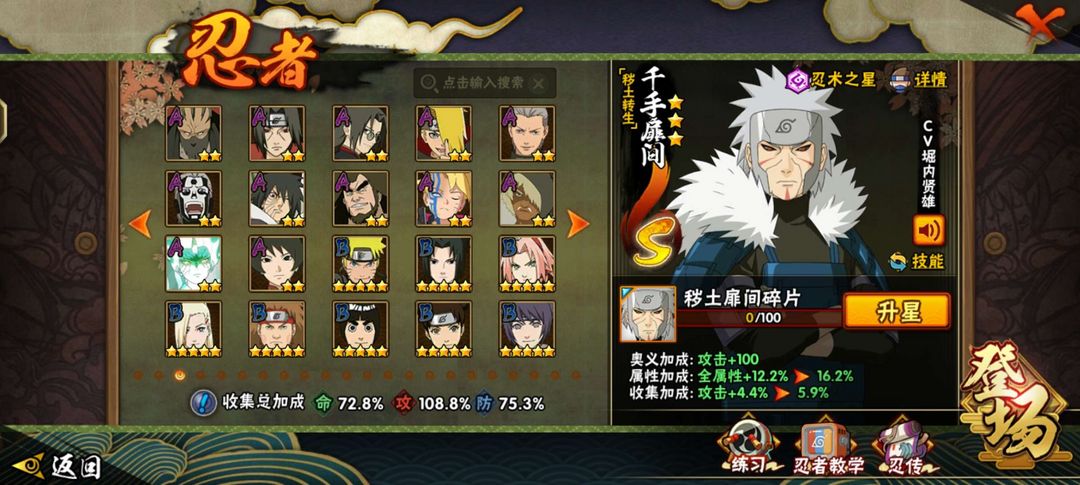 14S⭐28A⭐忍战带土⭐黑绝⭐十尾带土⭐红夜带土⭐永恒佐助⭐秽土柱间⭐解班⭐九尾鸣人⭐满级霸体⭐