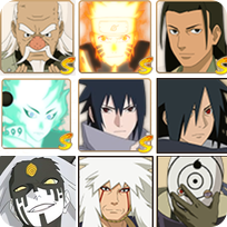 须佐卡卡西33S忍战艾解斑♥永恒佐助♥忍战樱♐九喇嘛♋忍战大野木♐死门凯⭕忍战带土♥创立斑罗砂