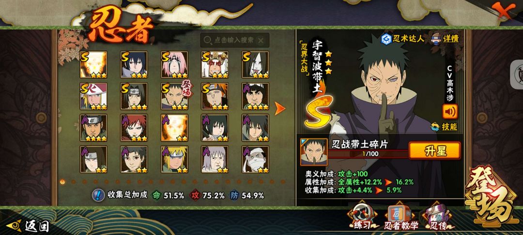 15S、30A、180忍、忍战带土、十尾带土、九尾鸣人、永恒佐助,高战账号,稀有拉满,体验拉满