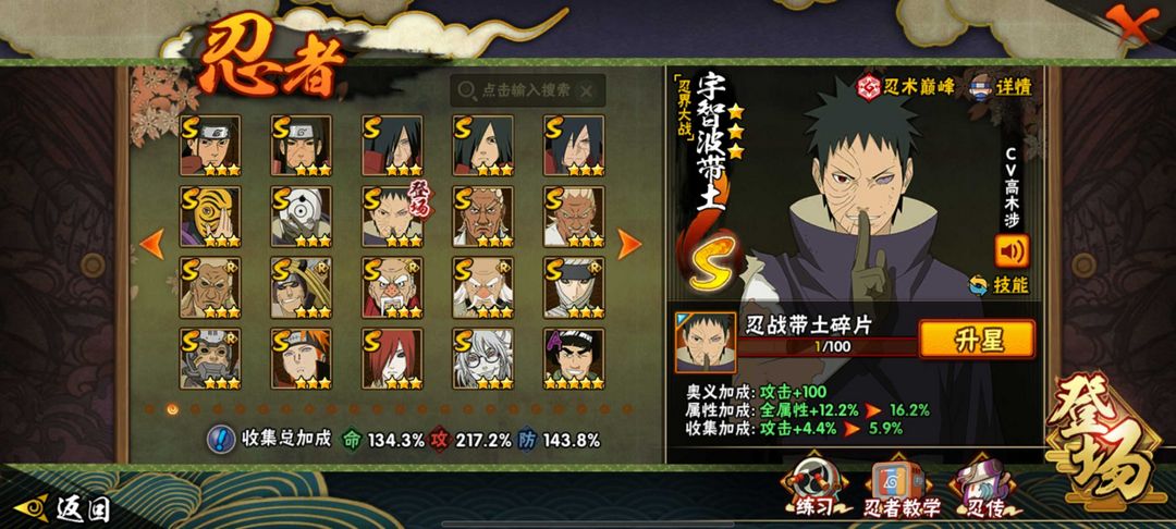 12S⭐38A⭐160忍⭐忍战带土⭐漂泊带土⭐侠隐佐助⭐五影会谈斑⭐秽土水门⭐秽土长门⭐新春鼬