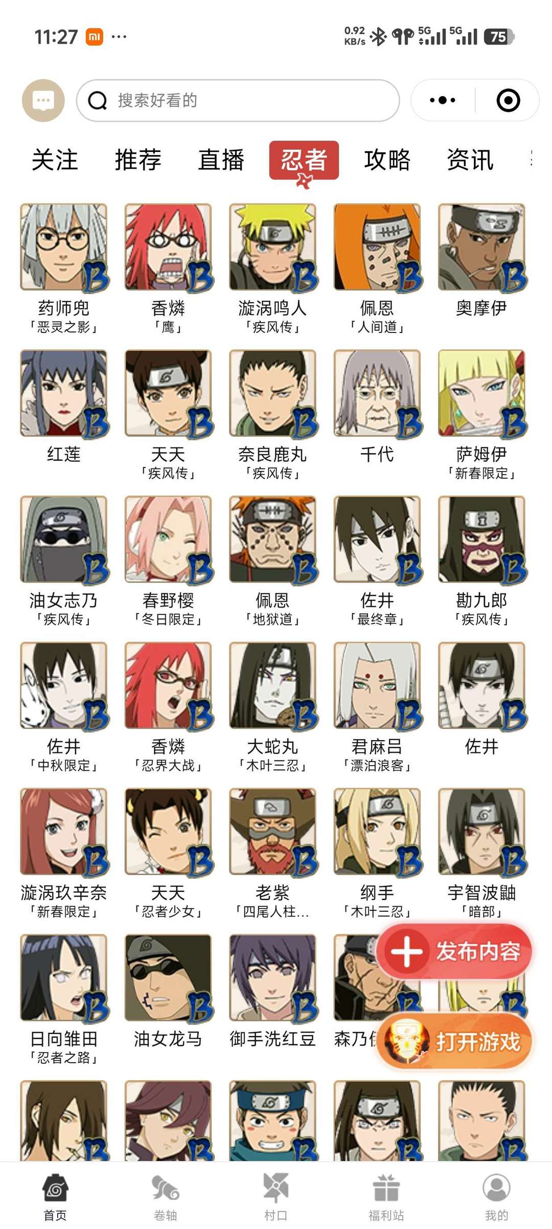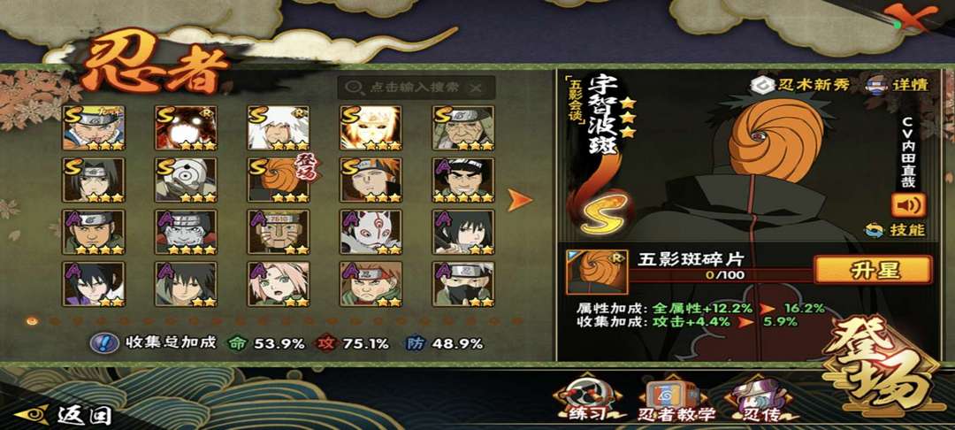 25S,60A,忍战带土,漂佩,漂二,新水,夏日卡卡西,小孩鸡翅,狂野鲛鲨等等热门忍者